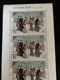 - 切手 シート 【切手趣味週間】待乳山の雪見 鳥居清長