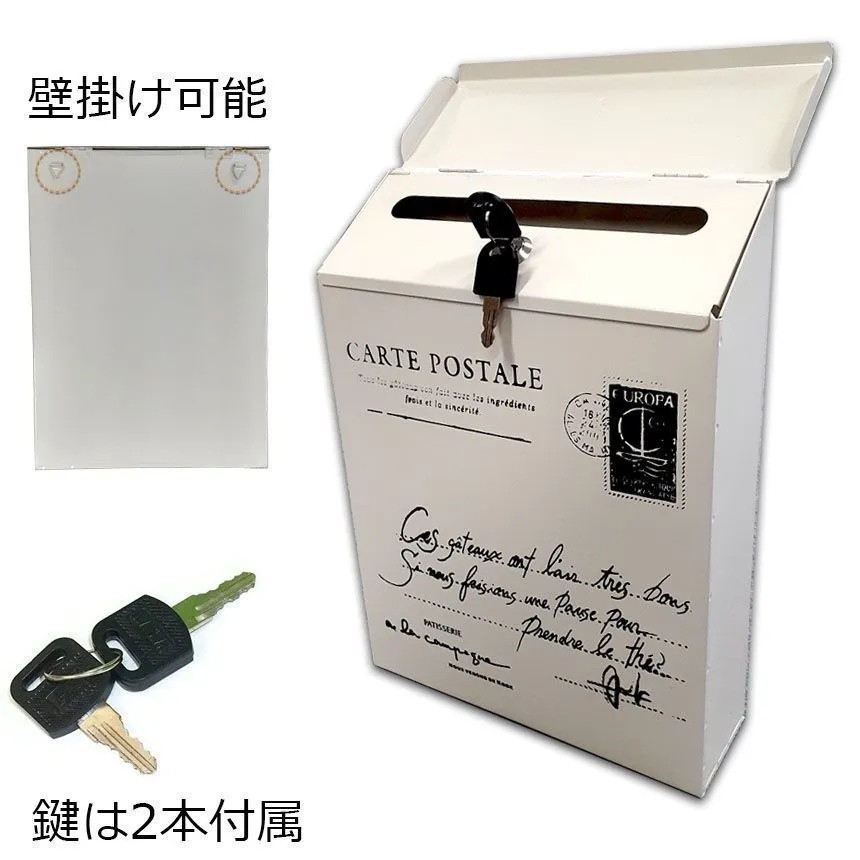 - 郵便ポスト ポスト 壁掛け 鍵2つ付き 郵便受け レトロ 郵便 投書箱 多用途 メールボックス 高さ30cmx幅22cmx奥行6.5cm ホワイト