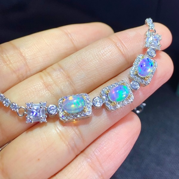 > 天然オパール ブレスレット、 5x7mm 、カラフルなファイアオパール、鑑別付き、残り時間4日までに最初に入札すると開始価格で購入可能 Yu