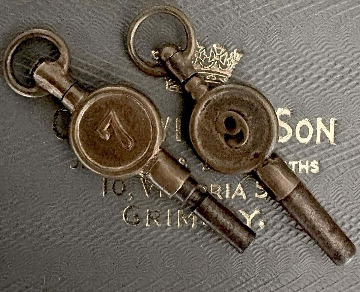 > No7&9 英国アンティーク/ビンテージ 鍵/鍵巻 2点 キーフォブ/チャーム 懐中時計 ウオッチキー アルバートチェーン コレクターズ