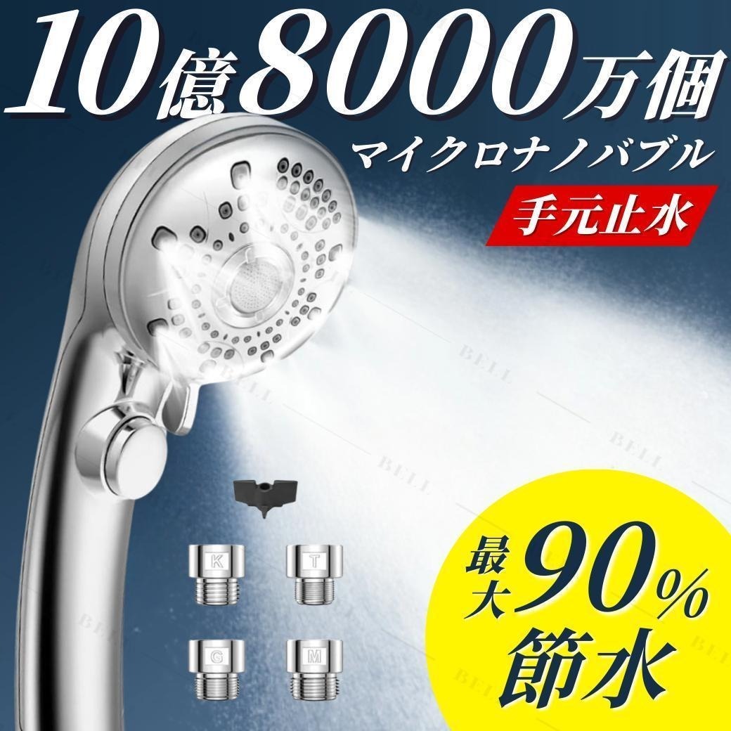 - シャワーヘッド マイクロナノバブル 節水 6段階 強い水圧 高洗浄力 手元止水 毛穴 ケア 汚れ 除去 美肌 止水 保湿 美顔 多機 取り付け簡単