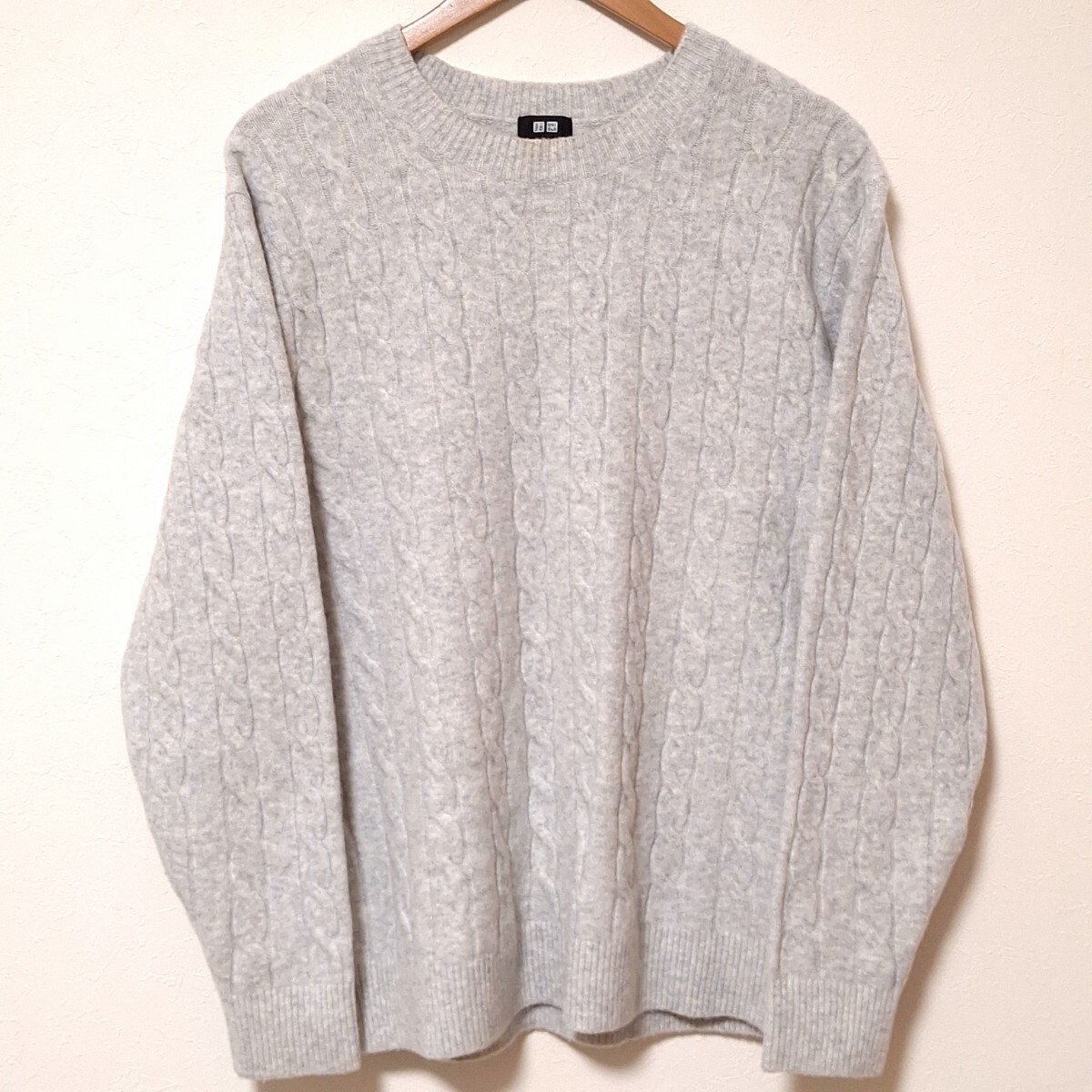 - 秋冬シーズンに最適◎【UNIQLO】ユニクロ スフレヤーン ケーブル クルーネック セーター ニット460950 ライトグレー サイズL /Y35610QQ