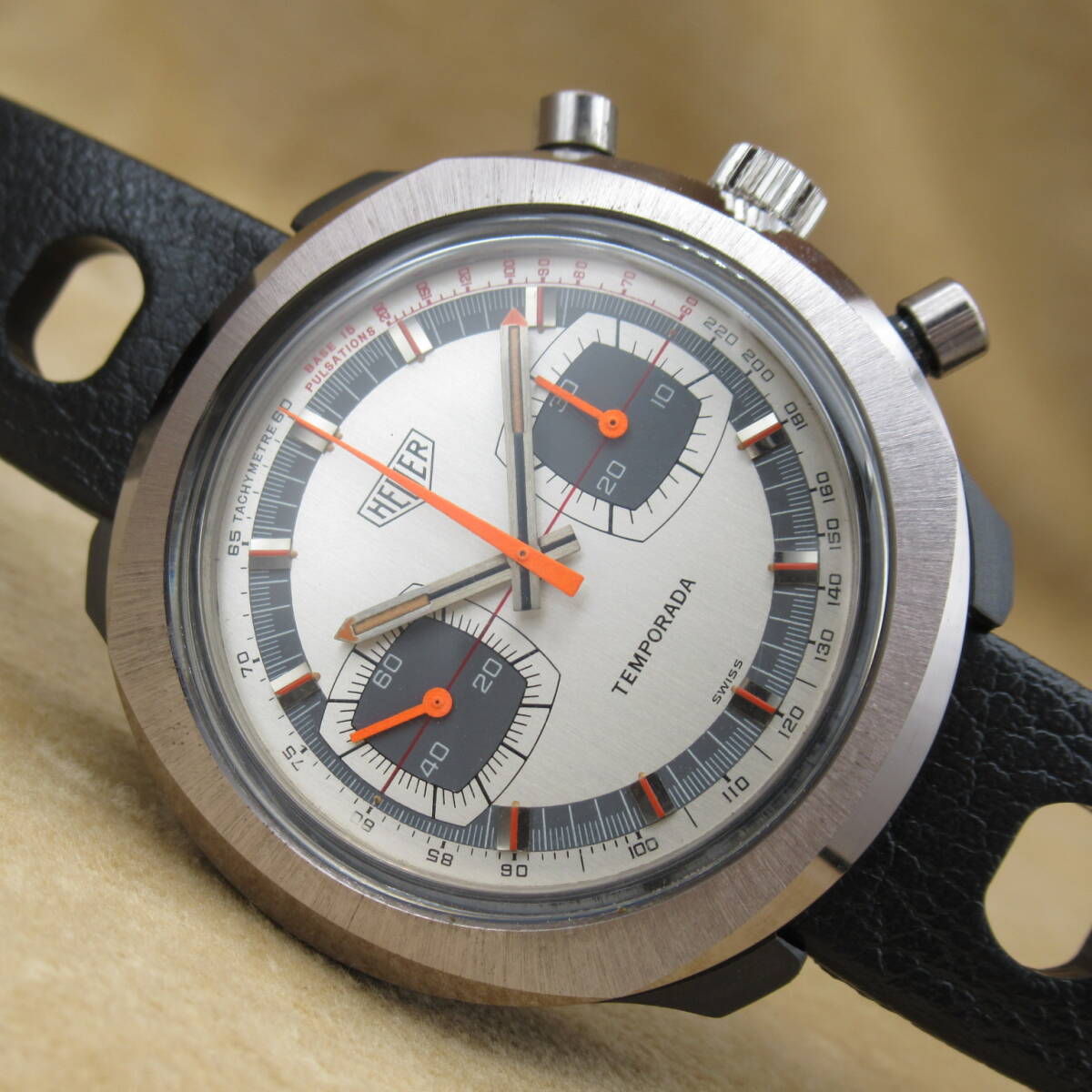 - 【希少/内部点検済】 HEUER ホイヤー テンポラーダ 733809 Valjoux 7733 バルジュー Temporada 1970年代 手巻 クロノグラフ レザー