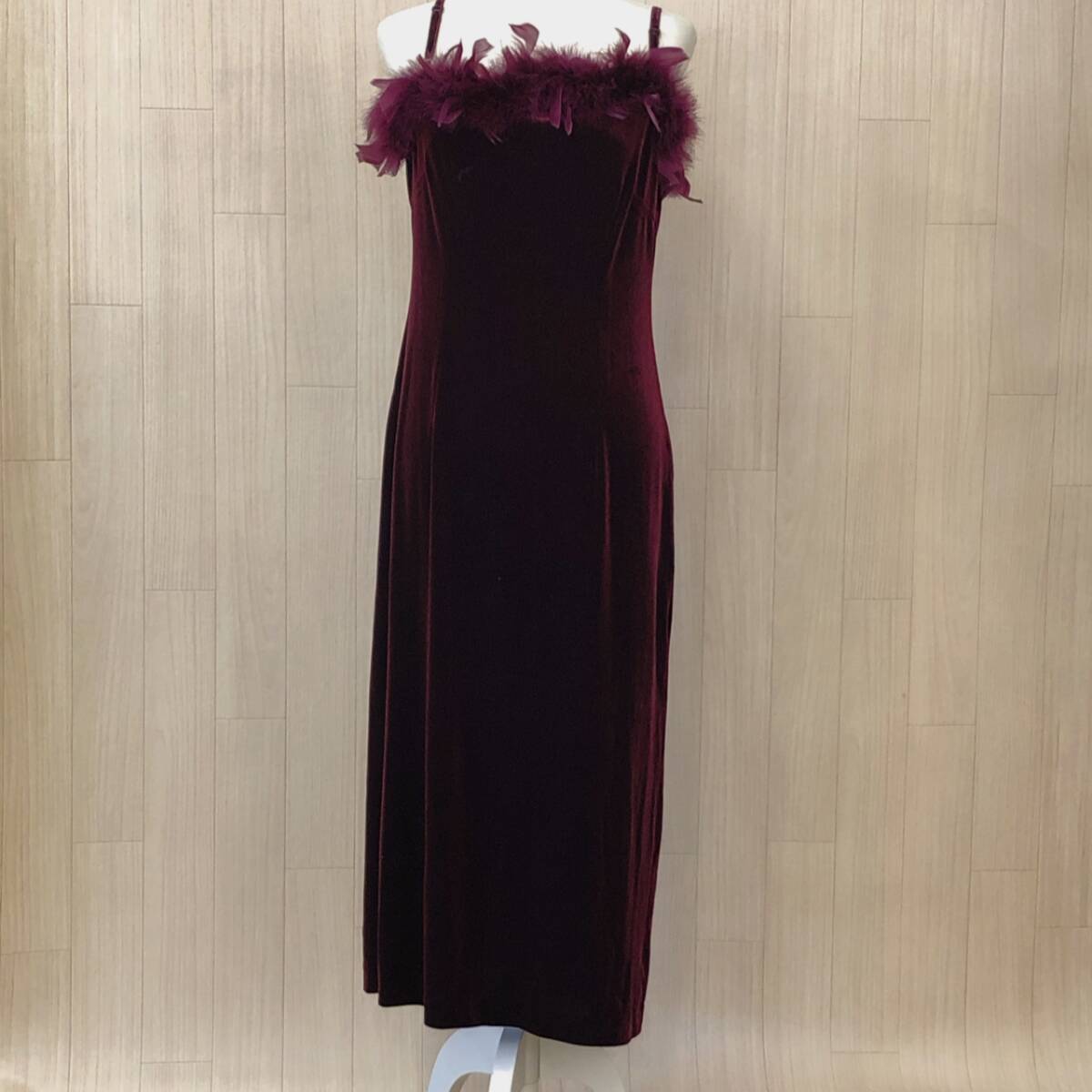 > Y2206 美品 ROSA レディース ドレス 袖無し 薄手 伸縮性 スリット ファスナー フェザー ゴージャス セクシー エレガント おしゃれ 春夏