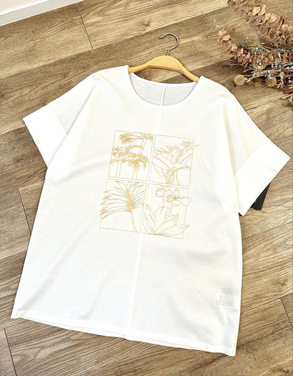> タグ付き 新品 belta attrice 上質な綿素材 肌触り 植物ゴールドプリント Tシャツ 半袖 コットン100% 半袖Tシャツ M~L
