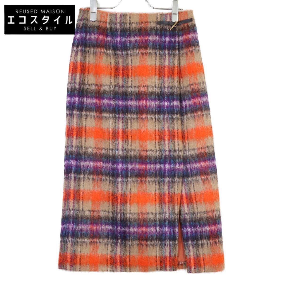 > ANAYI アナイ オレンジ×パープル シャギーチェック スカート オレンジ 38 スカート ウール レディース 中古