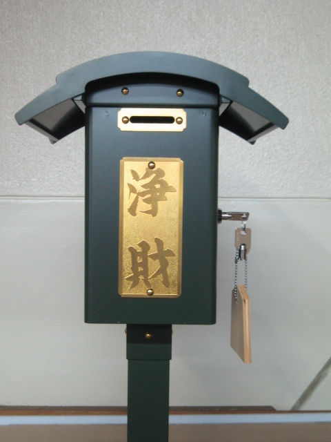 - 【寺院仏具】一本脚賽銭箱 ステンレス製 青銅色焼付け塗装仕上げ 埋め込み型 鍵付き 総高さ約148.5cm 浄財