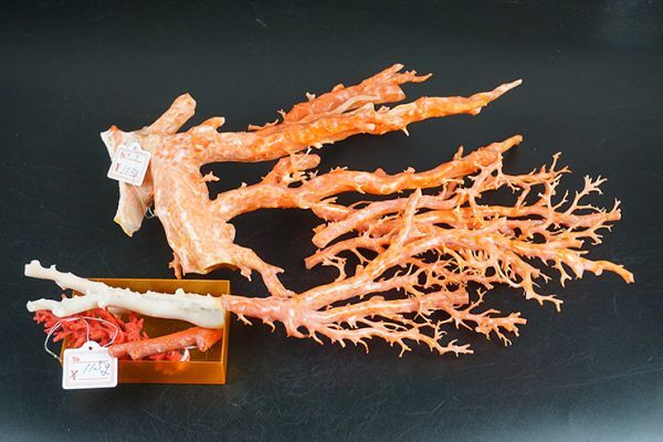 - D-286■珊瑚 原木 天然珊瑚 桃 赤 ピンク 珊瑚 枝珊瑚 865~870g