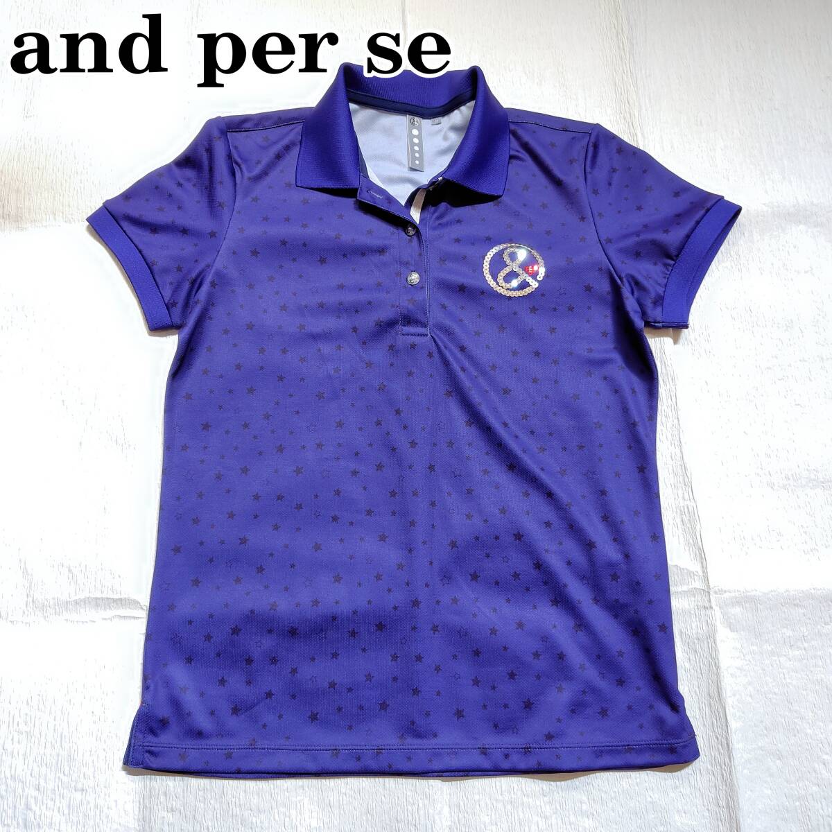 > and per se アンパスィ 総星柄 速乾半袖ポロシャツ 胸ロゴスパンコール 紫 レディースM ゴルフ 250801-02