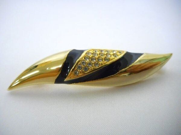 - ブローチ ラインストーン ブラック ゴールド M-204