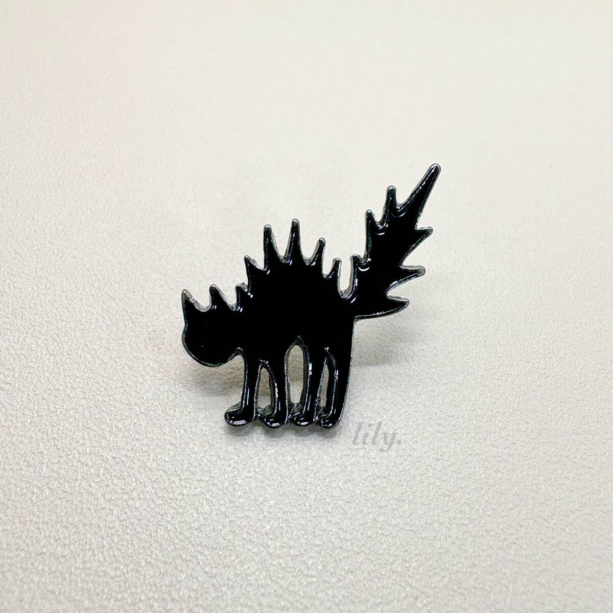 - 【ピンバッジ】逆立つ黒猫さん ビックリするにゃんこ