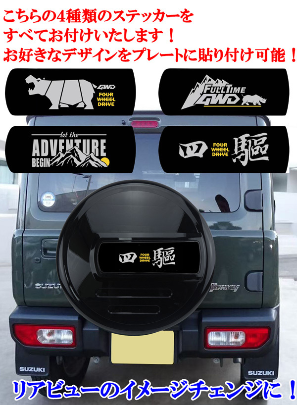 > 商品製造工場紹介動画付 ジムニー スペア タイヤカバー ハードカバー マットブラック 艶消黒 175/80R16 4×4 平板プレート 4種類ステッカー