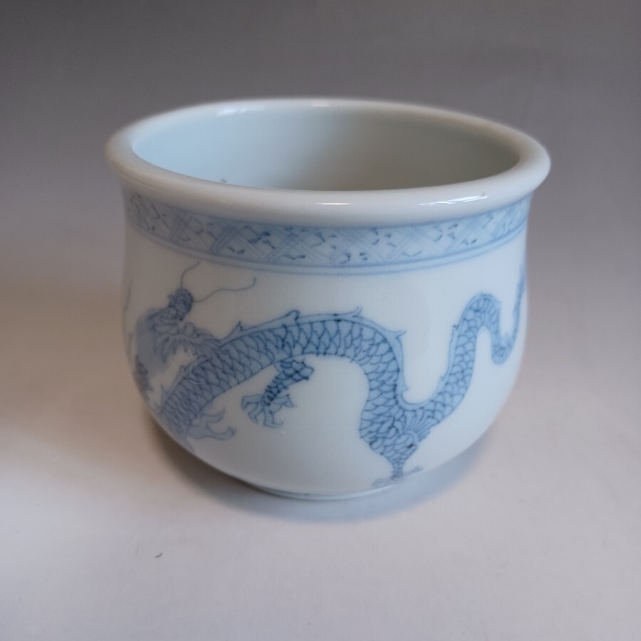 - 龍の紋様が神秘的で素敵な 時代唐物 [大明成化年製]銘 古染付 花竜紋 花龍紋 杯・盃 小碗 盞 小鉢 茶道具 煎茶道具 酒器
