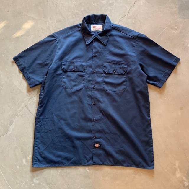 - 【XL】Dickies 半袖ワークシャツ ネイビー 紺無地■オールド アメリカ古着 ディッキーズ ボックス ビッグサイズ