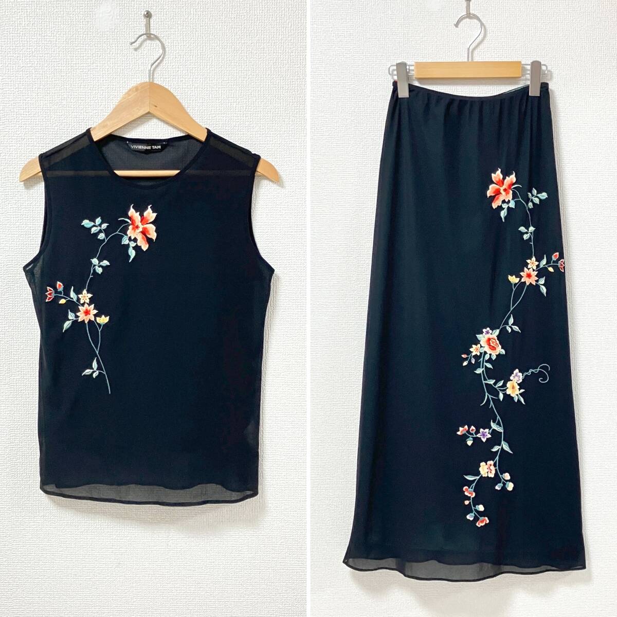 - VIVIENNE TAM Flower embroidery mesh 花 刺繍 パワーネット セットアップ ノースリーブ カットソー ロング スカート archive 5060292