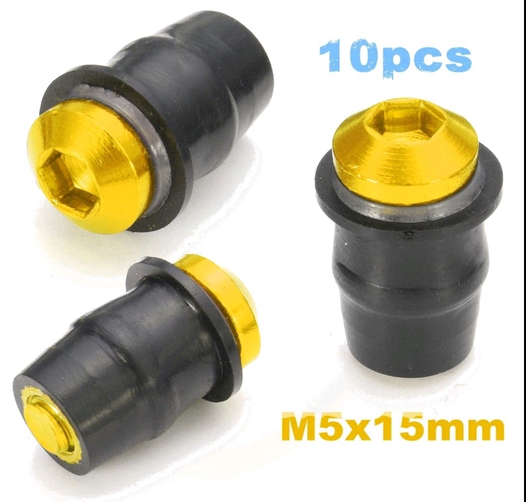 > カウリング ボルト M5 5mm×15mm ネジ ナイロン ワッシャー ウェルナット スクリーン シールド カウル 10本セット カウルボルト ゴールド