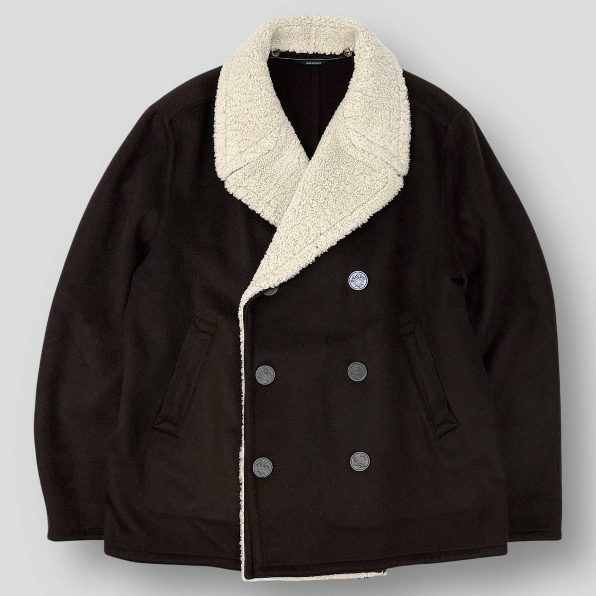 > 極美品 HERMES エルメス フランス製 CASHMERE MOUTON P-COAT カシミヤ×ムートン Pコート 52 ダークブラウン 襟ボア ジャケット SSM5758