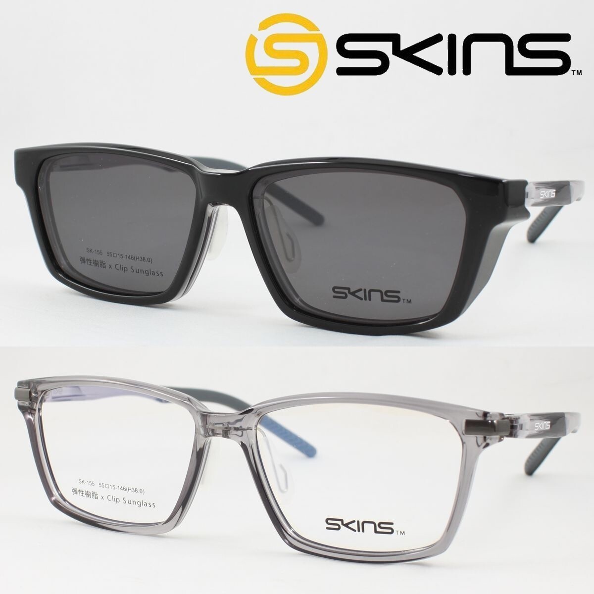 > SKINS スキンズ メガネフレーム SK-155-2 脱着式 マグネットクリップ偏光サングラス 度付き対応 近視 老眼鏡 遠近両用 スポーツ軽量 フード