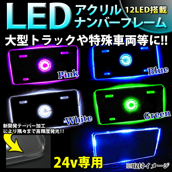 - 【ブルー】 LED 12発 アクリルナンバープレートフレーム 24V 大型 FJ1036-blue