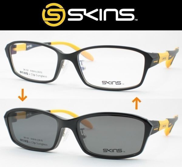 - SKINS スキンズ メガネフレーム SK-121-1 マグネットクリップ偏光サングラス 度付きレンズ可 近視 遠視 乱視 老眼鏡 遠近両用 伊達メガネ