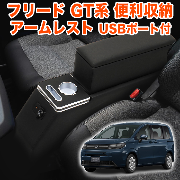 > フリード GT 系 アームレスト 上下段2層式 コンソール 肘置き ドリンクホルダー 運転席 助手席 USB タイプC Type-C FJ5804