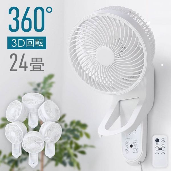 - 扇風機 サーキュレーター 壁掛け 360度 おしゃれ 2025 回転 首振り 省エネ 壁付 リモコン コンパクト タイマー 自動 オフ機能 送風機 節電