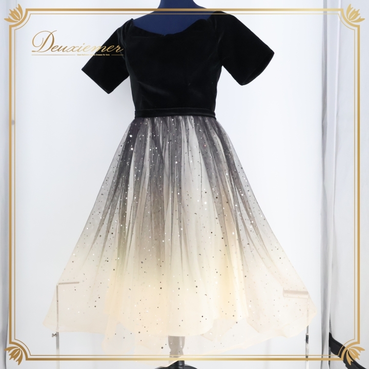 - パーティドレス ワンピース ドレス 黒 アイボリー レース 星 月 丸 柄 ラメ ブラック系 ベージュ系 ベロア パーティ 発表会 イベント 舞台