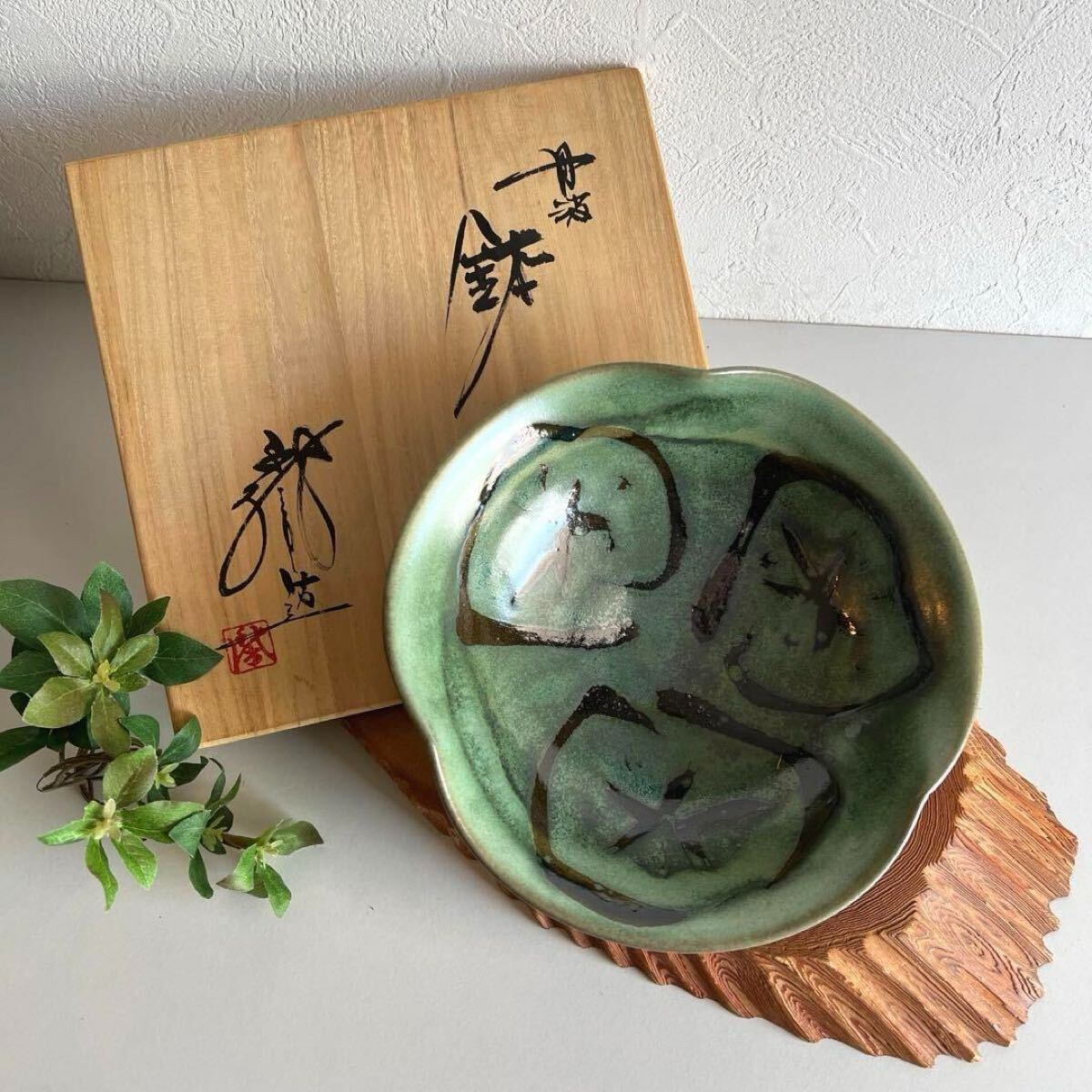 - wasabi k799 丹波焼 陶芸家清水千代市作「鉢」深緑の落ち着きある銘品 共箱 陶印 蓮池のような深みのある雰囲気が素晴らしい逸品