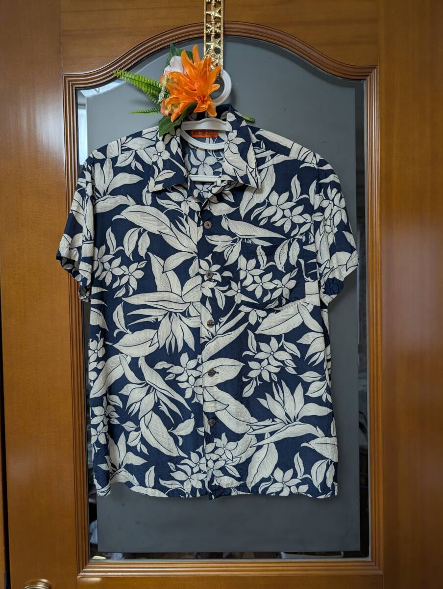 - 【JUNE】アロハシャツ ハワイアンシャツ かりゆし 花柄 ボタニカル ネイビー S ☆彡