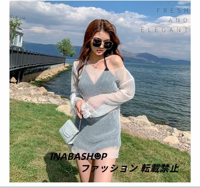 - 可愛い 長袖 オーバーtシャツ タンキニ 3点セット レディース 水着 大人 ビキニセット 体型カバー 透け感 おしゃれ 韓国風