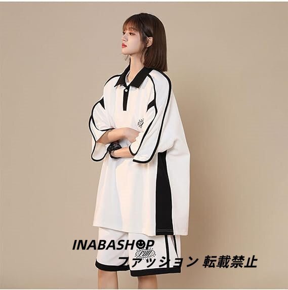 - ゆるビッグシルエット セットアップ メンズ レディーズ 大きいサイズ tシャツ ハーフパンツ 2点セット 夏服 男女兼用 オーバーサイズ