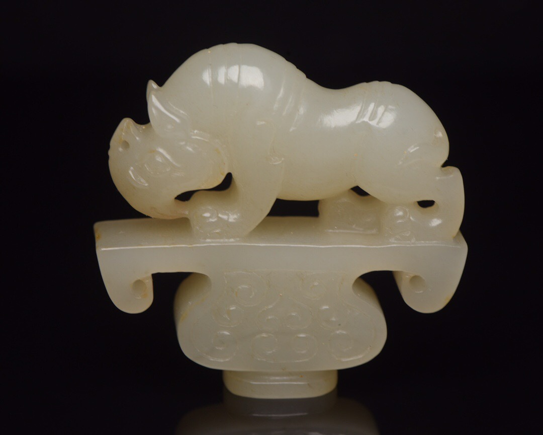 - 『館蔵珍品 和田玉製 細密彫 玉牛 置物 賞物』稀少珍蔵品 古賞物 貴重物品 収蔵品 中国古美術 時代物 古董品