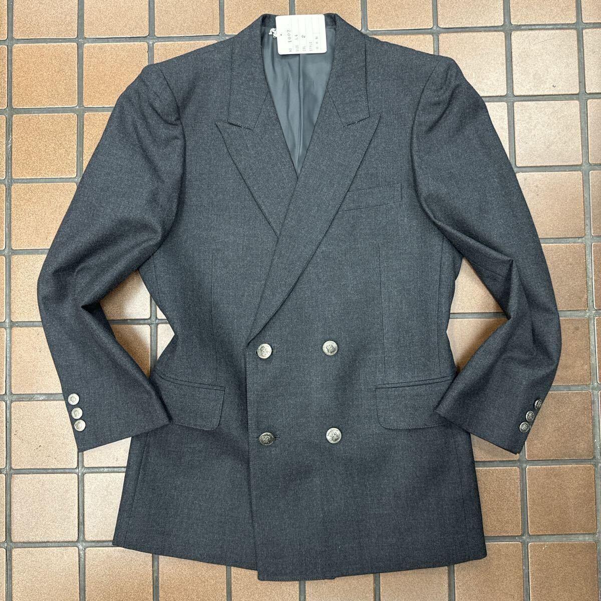 > 新品☆未使用【サイズA4 S★日本製ジャケット】4Bダブルジャケット グレー系 サイドベンツ GOLFジャケット メタルボタン ブレザーメンズ