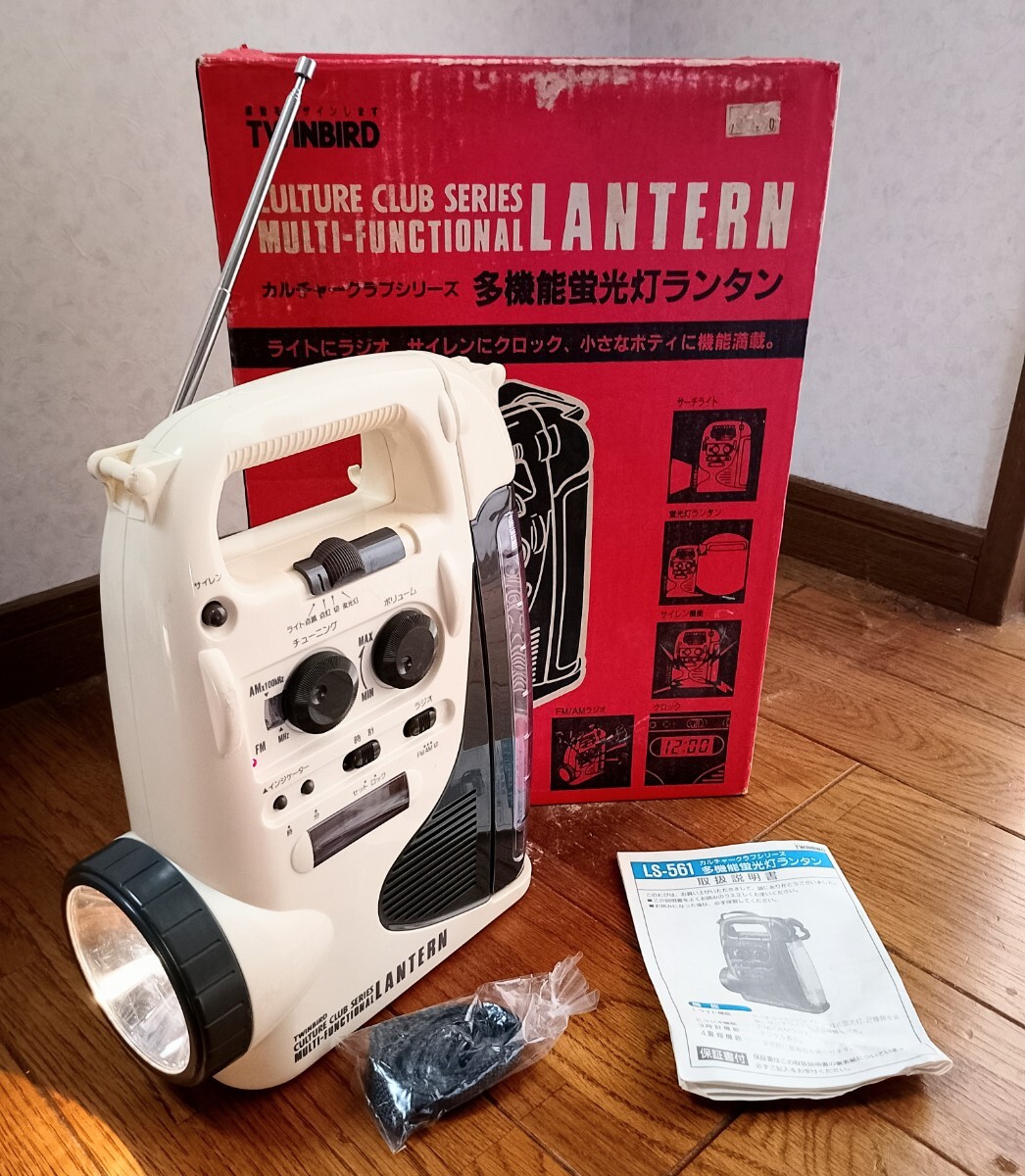 > ★極美品 TWINBIRD ツインバード 多機能 蛍光灯 ランタン LS-561 サーチライト サイレン クロック FM/AM 防災 ラジオ 箱付き ホワイト 白