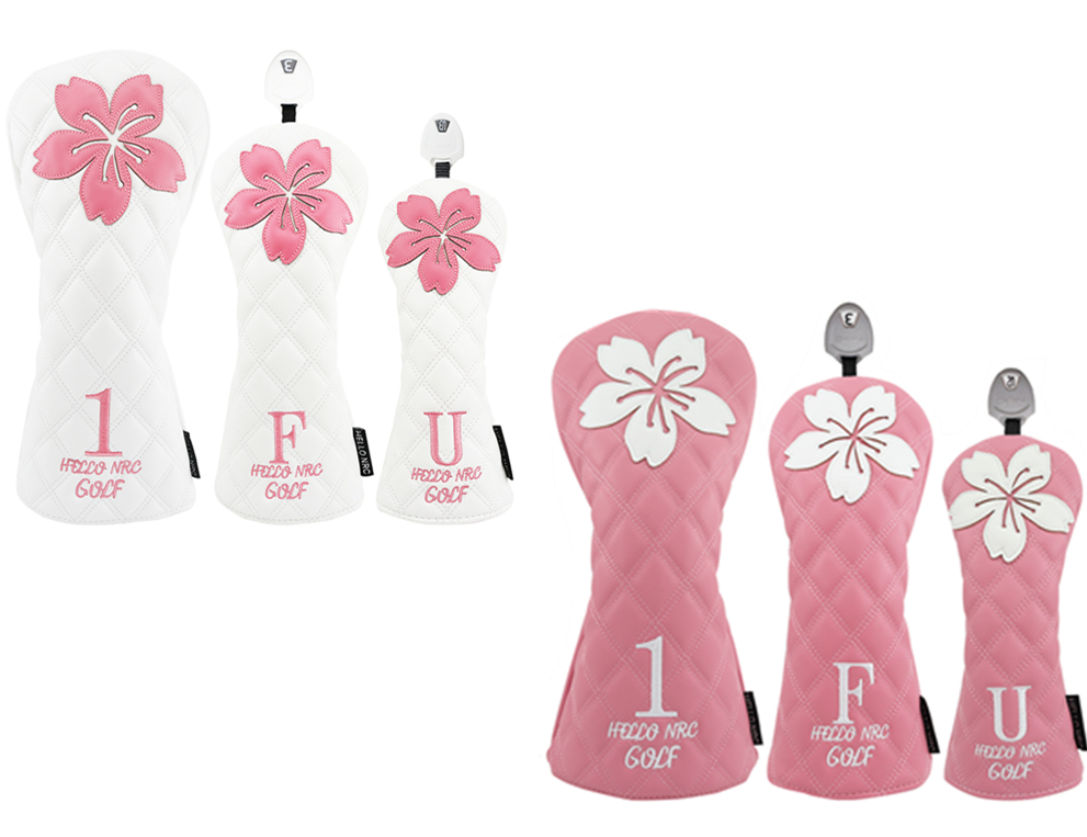 - ゴルフヘッドカバー ドライバー440cc 460cc用カバー ウッド用カバー ユーティリティ UT用カバー 桜 さくら 1点