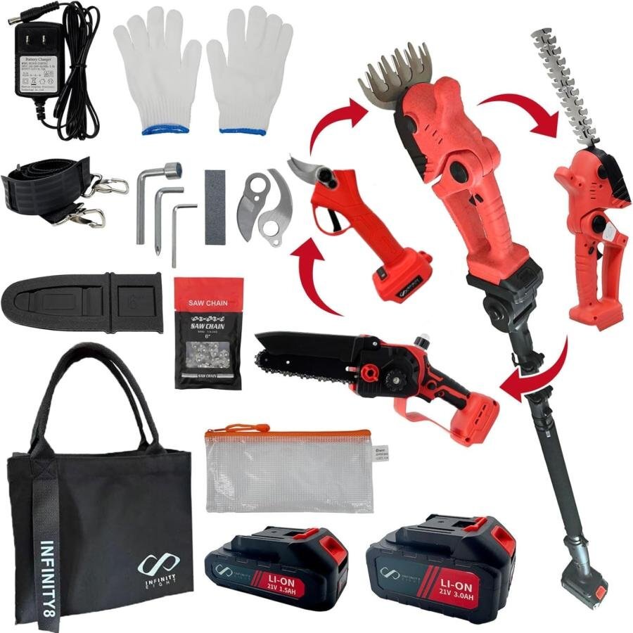 - 高枝チェーンソー 草刈り機 高枝ハサミ マキタ バッテリー 互換 電動 芝刈り機 シバカリ ヘッジトリマ 8in1 延長ポール