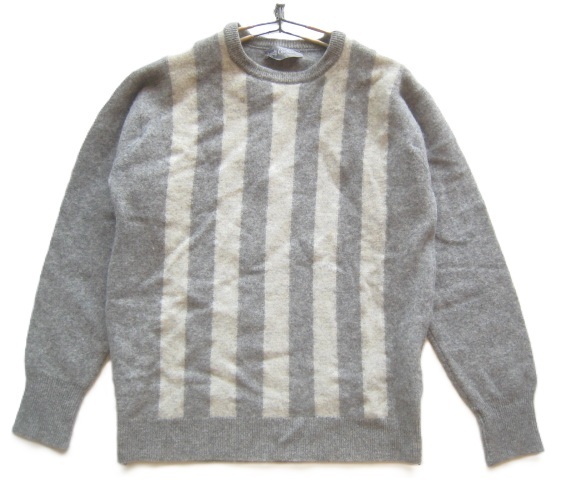 > 極上イングランド製!!コックスモア Coxmoore of ENGLAND*ストライプ織り柄 ヴァージンウールニットセーター L 実寸M グレー