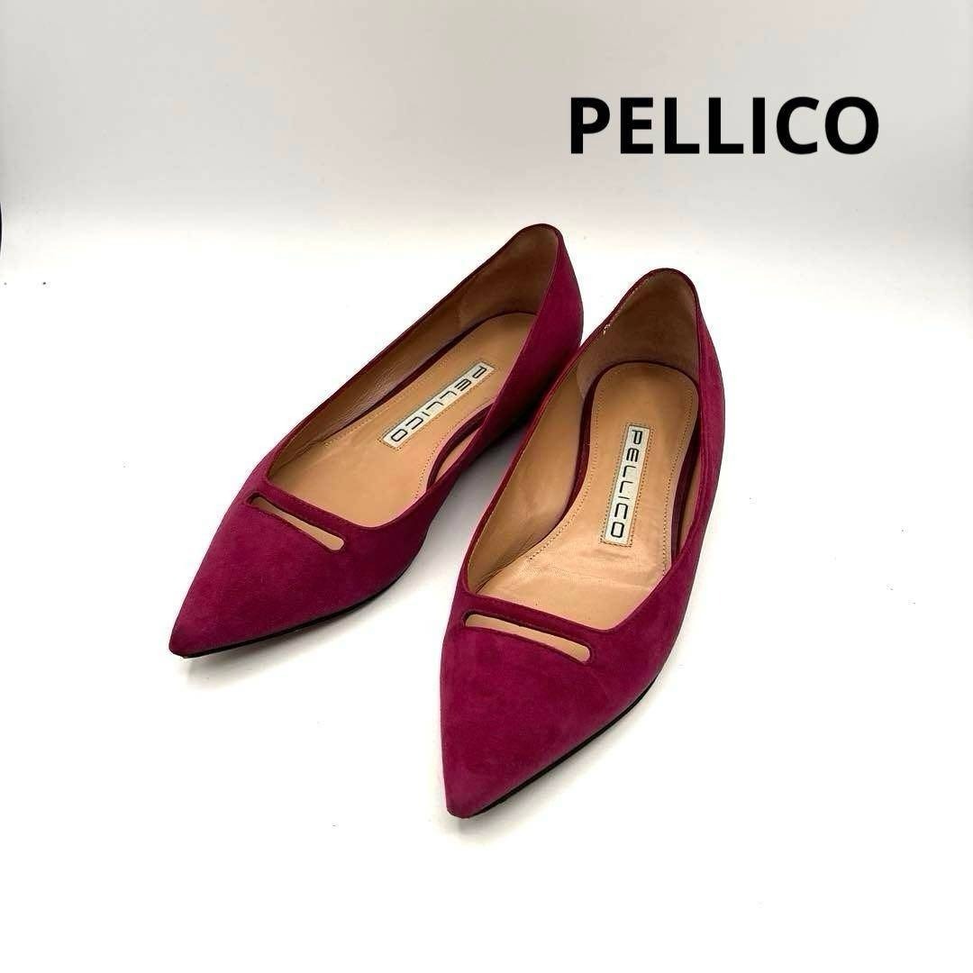 - ペリーコ アネッリ フラットパンプス スエード パープル ポインテッドトゥ PELLICO ANELLI