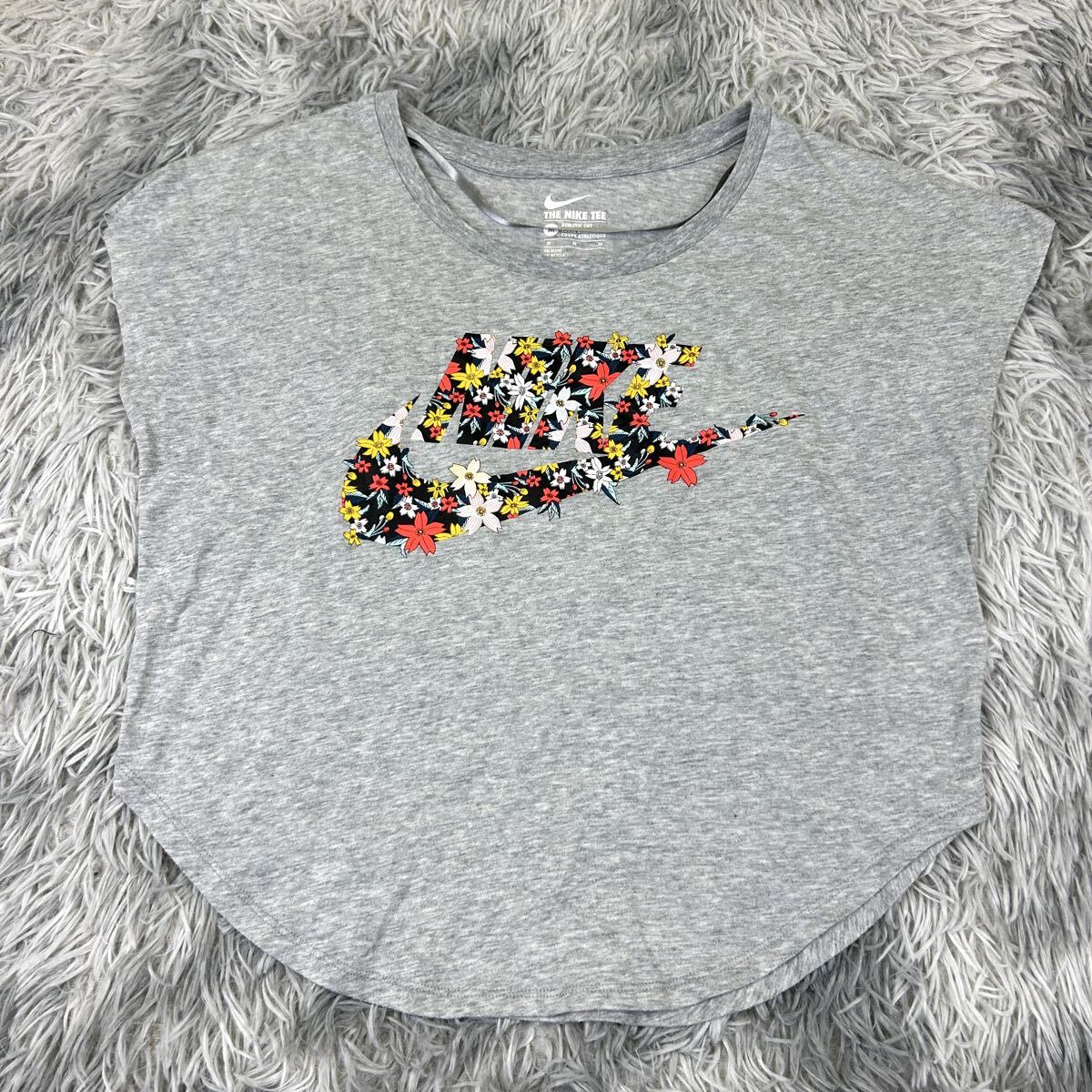 - NIKE ナイキ Tシャツ カットソー ノースリーブ ビッグロゴ 花柄 グレー M