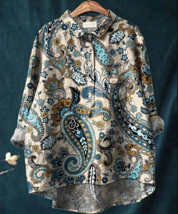 > 新入荷*秋新作 キレイめ チュニック シャツ ブラウス 長袖 トップス プリント柄 ゆったり 通勤 シャツ 大きいサイズ ロングシャツ * 柄3