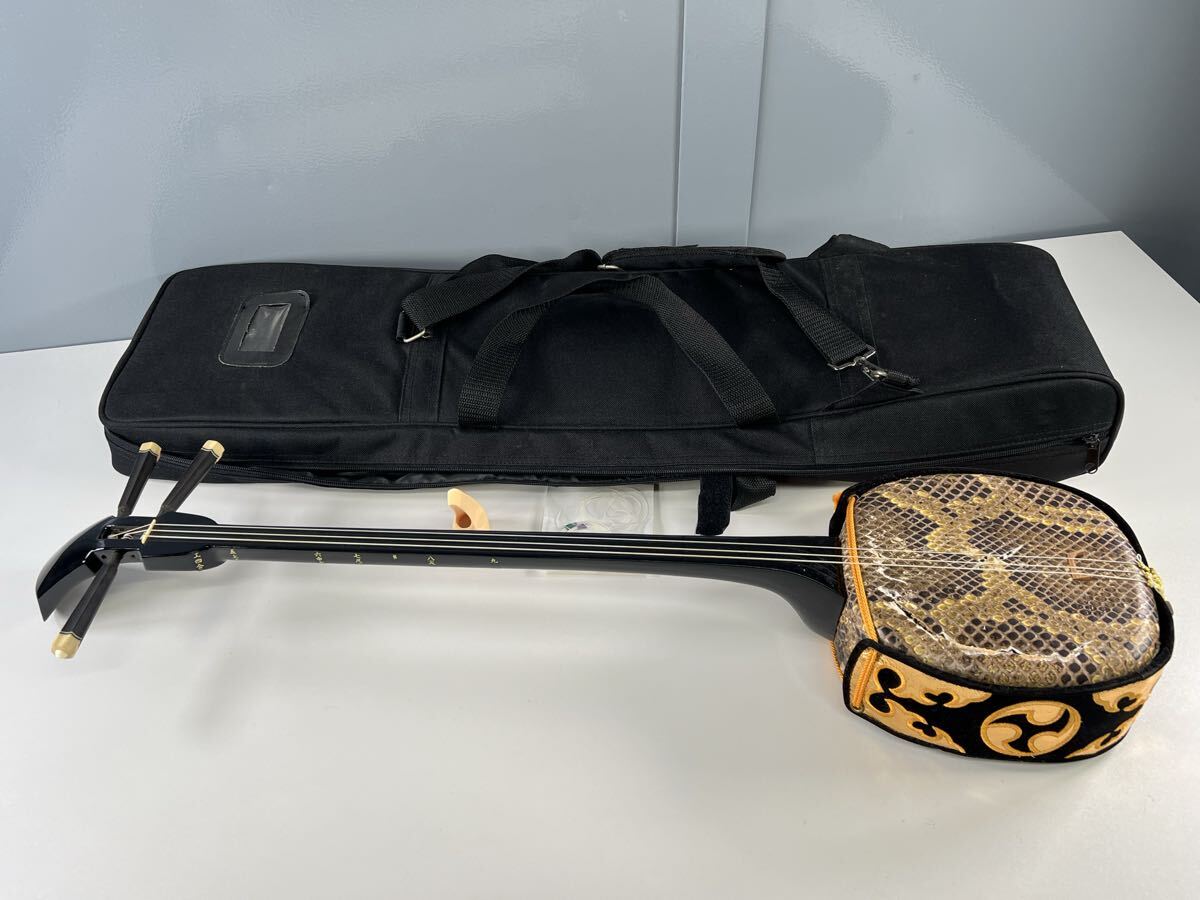 - ◆ 沖縄三線 真壁型黒塗り 人工皮 蛇皮 奄美三線 琉球三線 弦楽器 和楽器 伝統楽器 三線 ソフトカバー付き 中古品 現状品 管理KA294