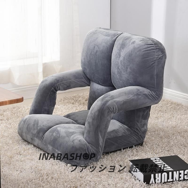 - 座椅子 肘掛け付き ソファチェア 背もたれ 肘掛け椅子 腰痛対策(グレー)
