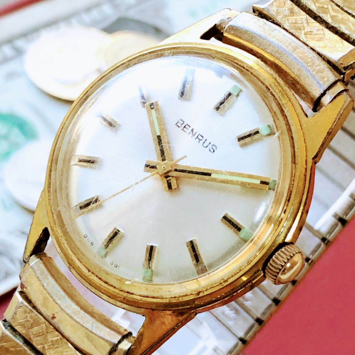 > #3738【シックでお洒落】メンズ 腕時計 ベンラス 動作品 手巻き BENRUS 金張り アンティーク ヴィンテージ 機械式 ゴールドF 3針 アナログ