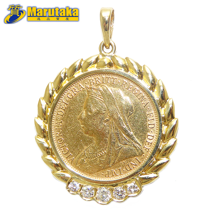 > ソブリン金貨 ダイヤ ペンダント トップ K22 K18 YG 1901年 コイン ダイヤモンド イエローゴールド Yellow Gold Sovereign