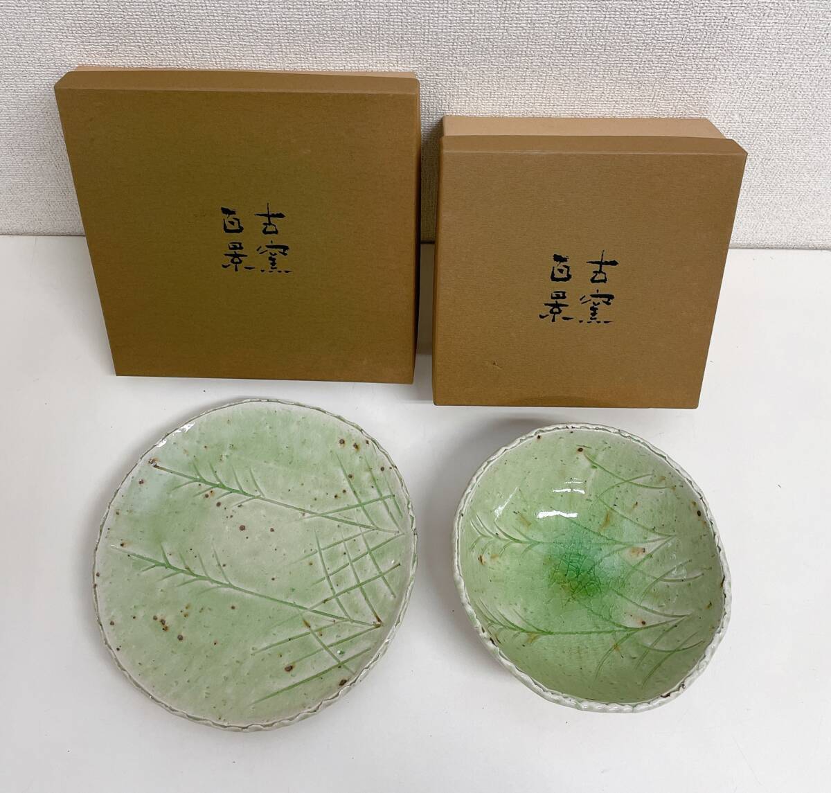 - 【前畑陶器 釉彩盛鉢・盛皿2点セット★】和食器/グリーン/インテリア/おもてなし/外箱入/足付/菓子皿/A78-236