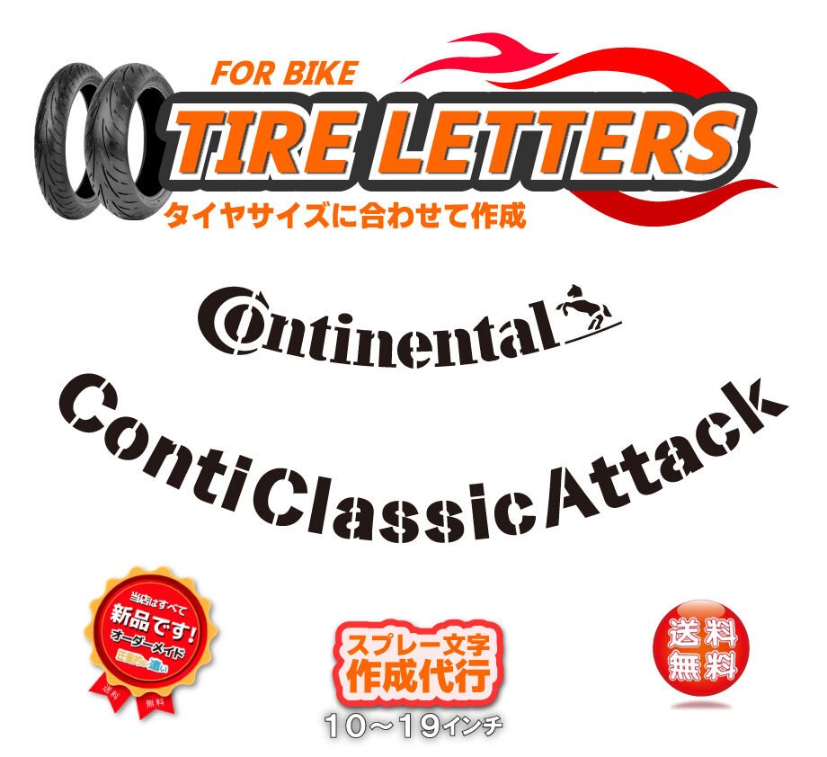 「CONTINENTALでタイヤサイズが225/35/18で、文字高さ4cmで作成願います。。」 等