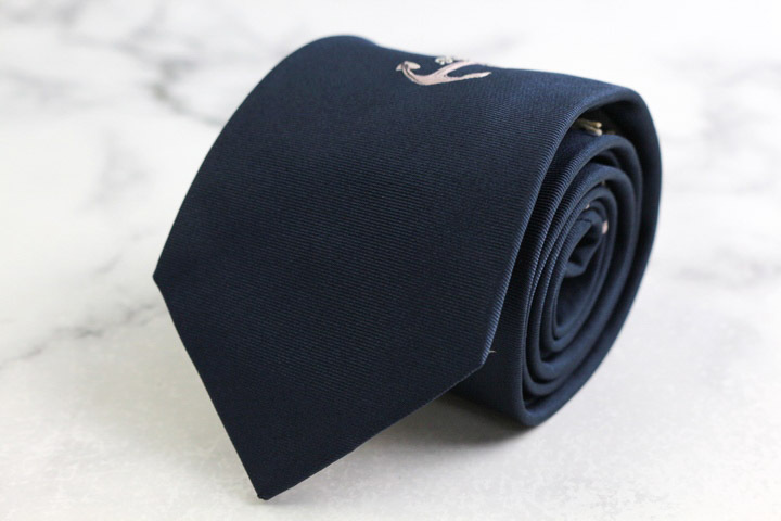 - ドミニクフランス クラウン ブランド ネクタイ イカリ柄 高級 シルク フランス製 PO メンズ ネイビー Dominique France Crown