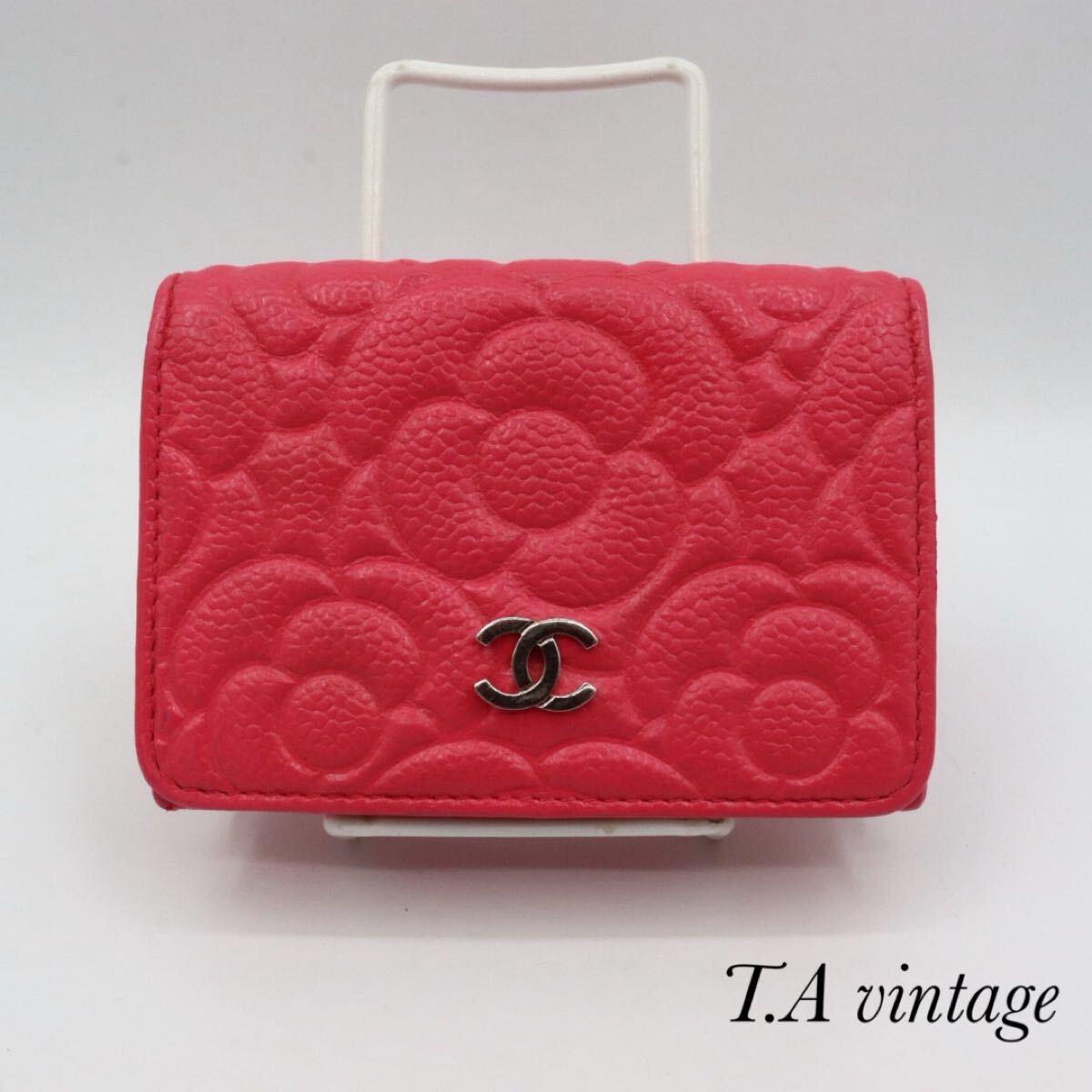 - CHANEL 美品 シャネル カメリア レザー コンパクト 財布 ピンク
