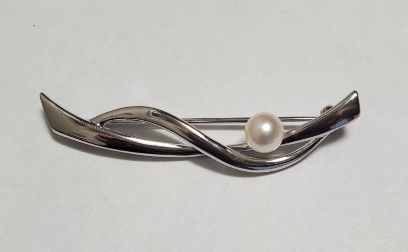 - SILVER シルバー刻印 本真珠 パール ブローチ レディース アクセサリー 4,1g 美品