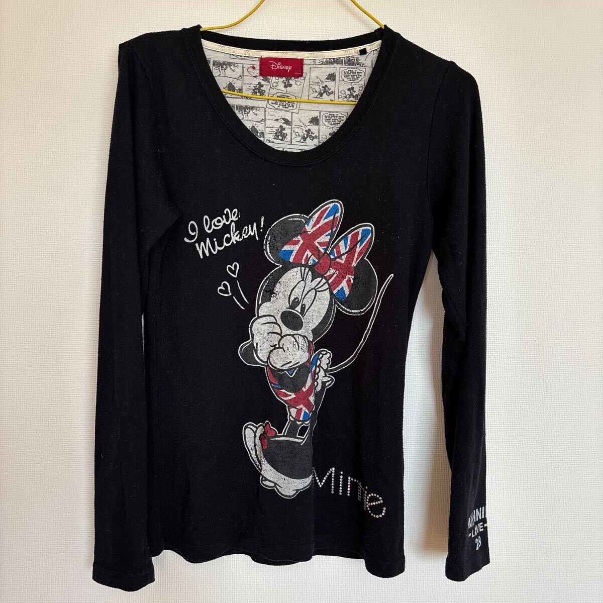 - Disney Minnie ディズニー ミニー 長Tシャツ 黒 L 中古
